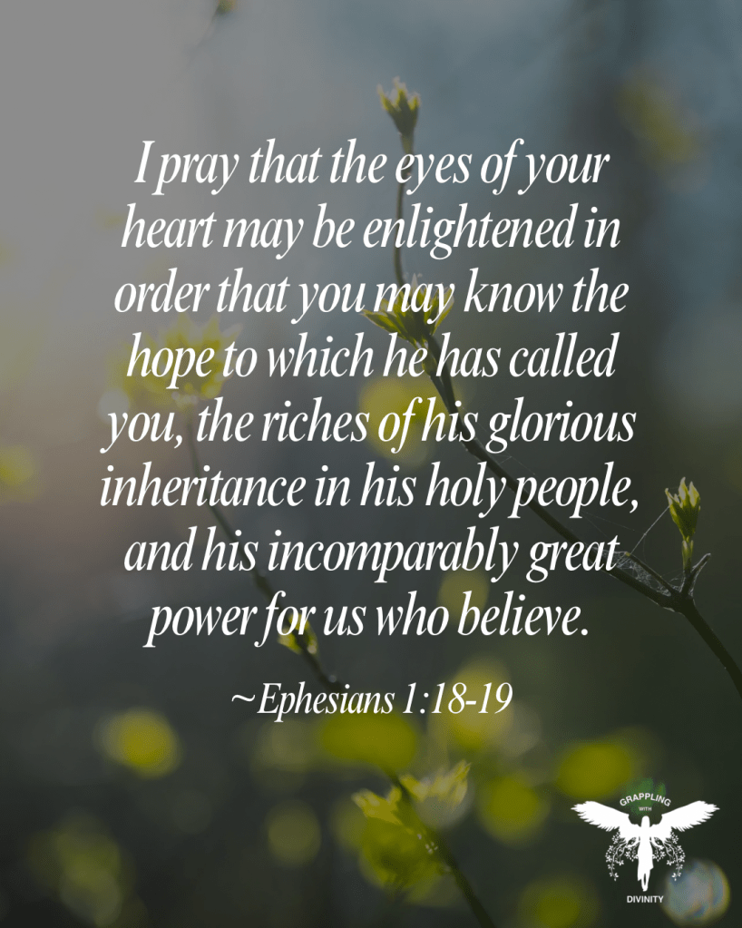 “I pray that the eyes of your heart may be enlightened in order that you may know the hope to which he has called you, the riches of his glorious inheritance in his holy people, and his incomparably great power for us who believe.”