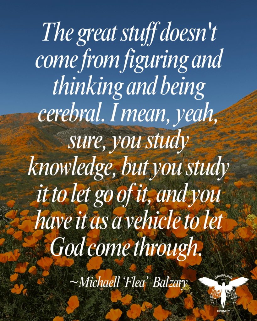 “The great stuff doesn’t come from figuring and thinking and being cerebral. I mean, yeah, sure, you study knowledge, but you study it to let go of it, and you have it as a vehicle to let God come through.”