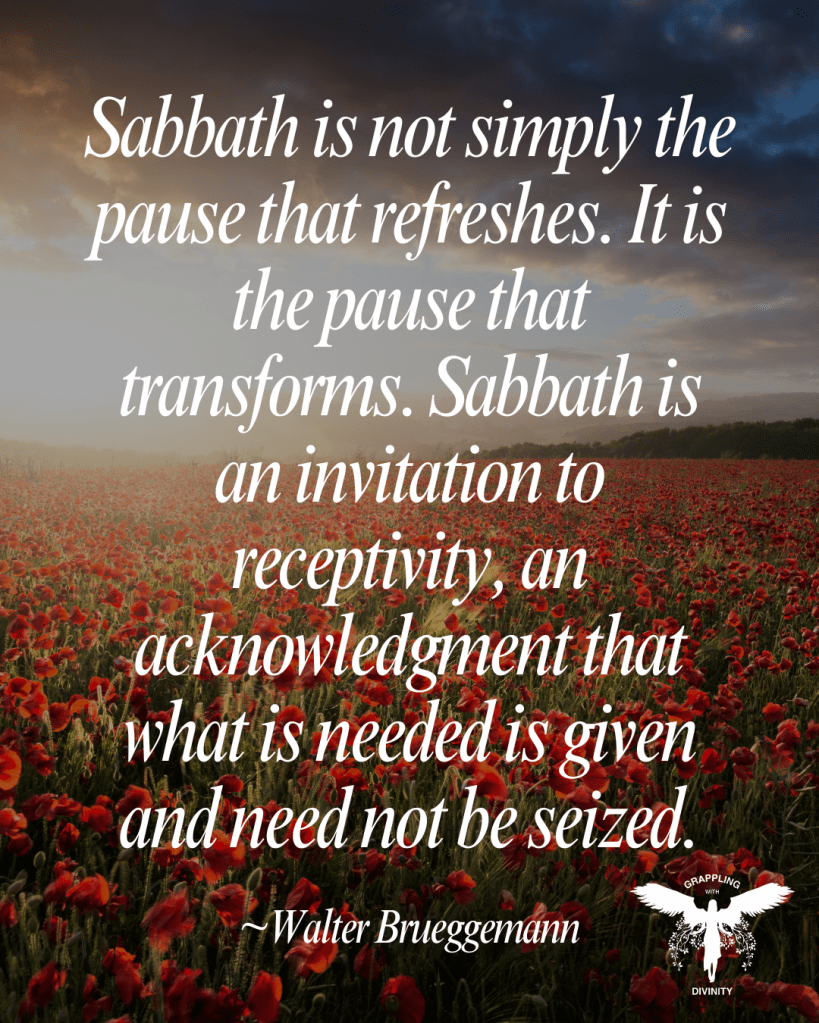 “Sabbath is not simply the pause that refreshes. It is the pause that transforms. Sabbath is an invitation to receptivity, an acknowledgment that what is needed is given and need not be seized.”