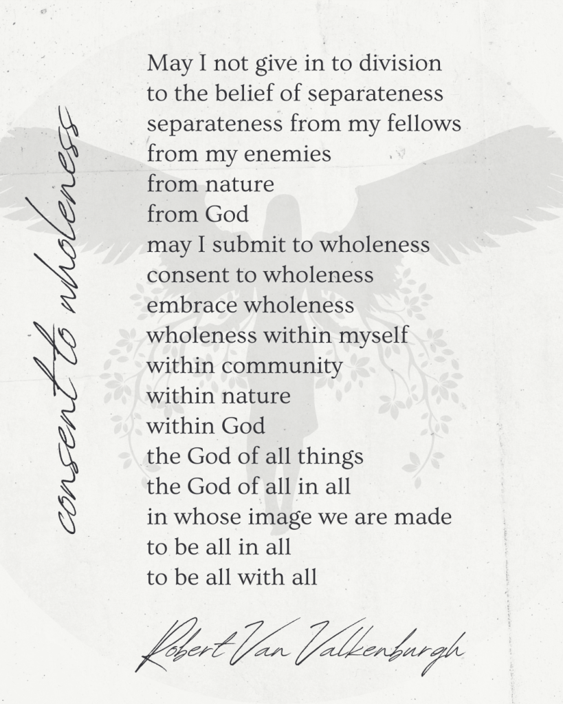 Where in your life are you tempted to believe in separation rather than unity, and what might it look like to consent more fully to God’s wholeness there?